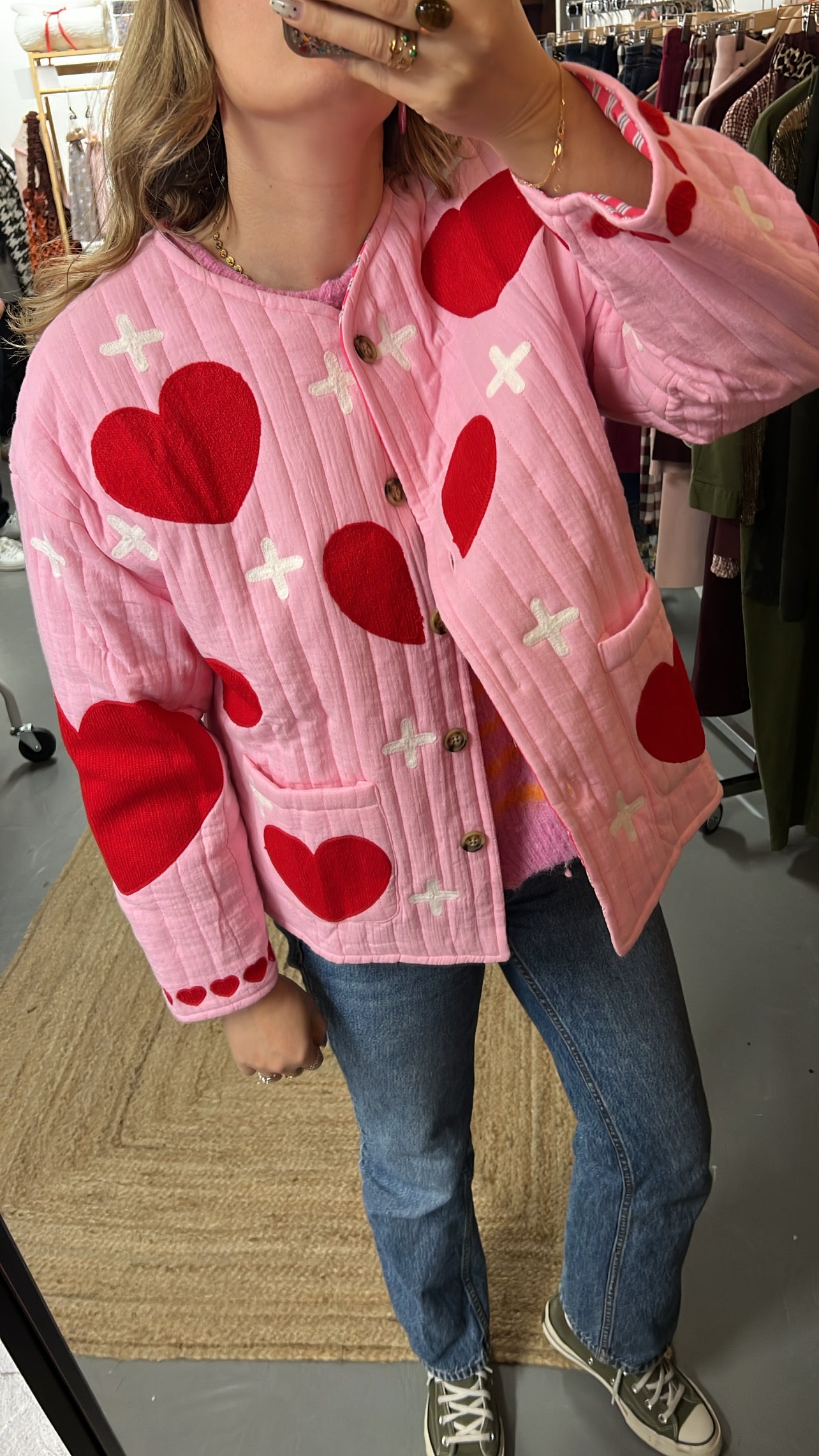 Avec son fond rose tendre, ses cœurs rouges graphiques et ses petits motifs croix écrus, elle apporte une touche fun et originale à toutes vos tenues.