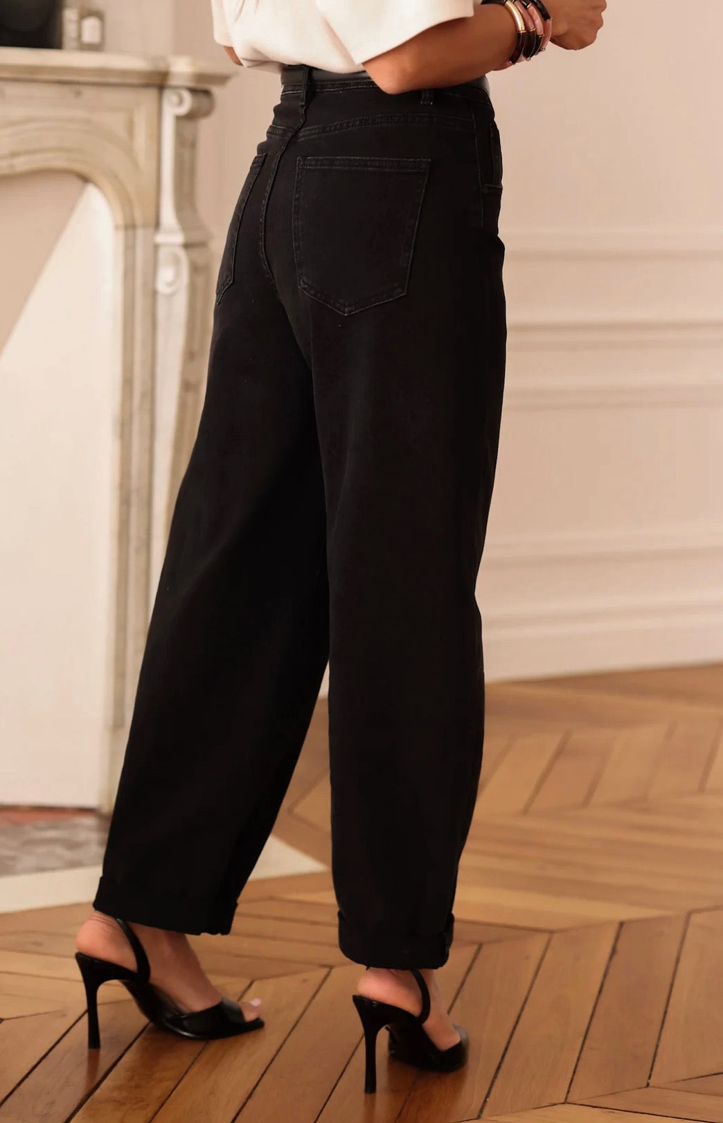 Le jean parfait pour un look moderne et confortable. Sa coupe droite et ample allonge la silhouette tout en assurant une aisance absolue. Sa taille haute souligne joliment la taille et offre un maintien impeccable.